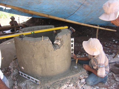kayu atau pipa besi (pipa besi bekas as dari pengecoran kubah). Selanjutnya isi